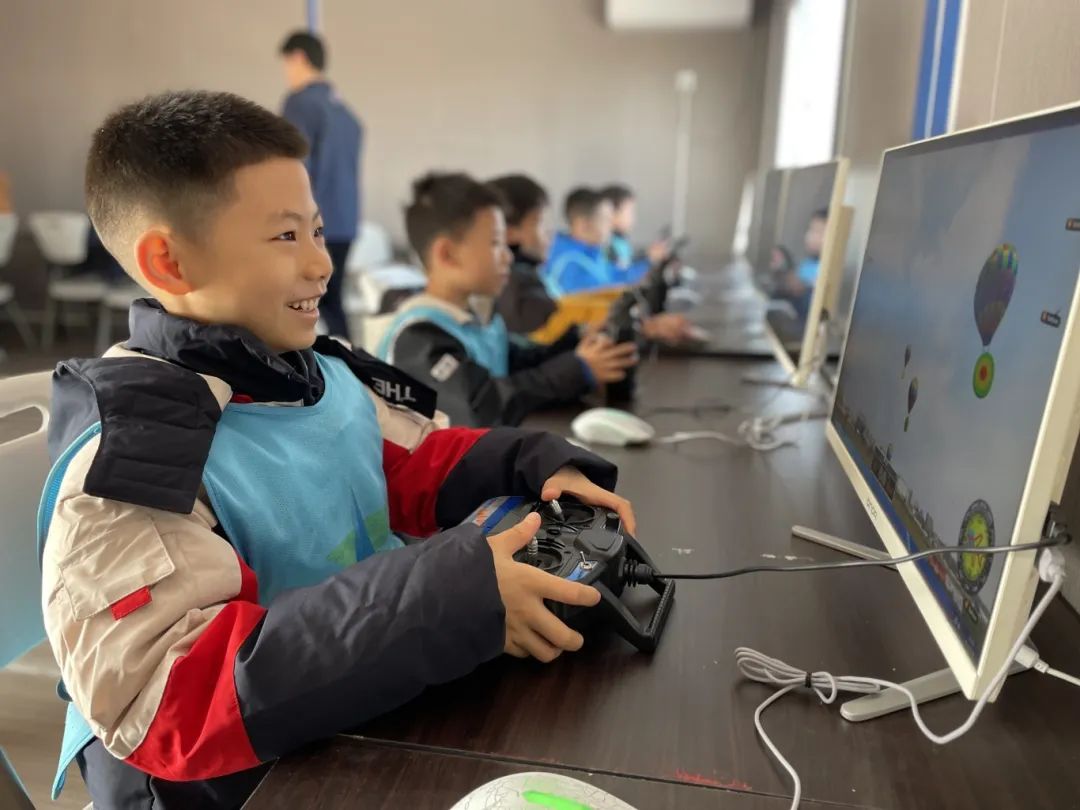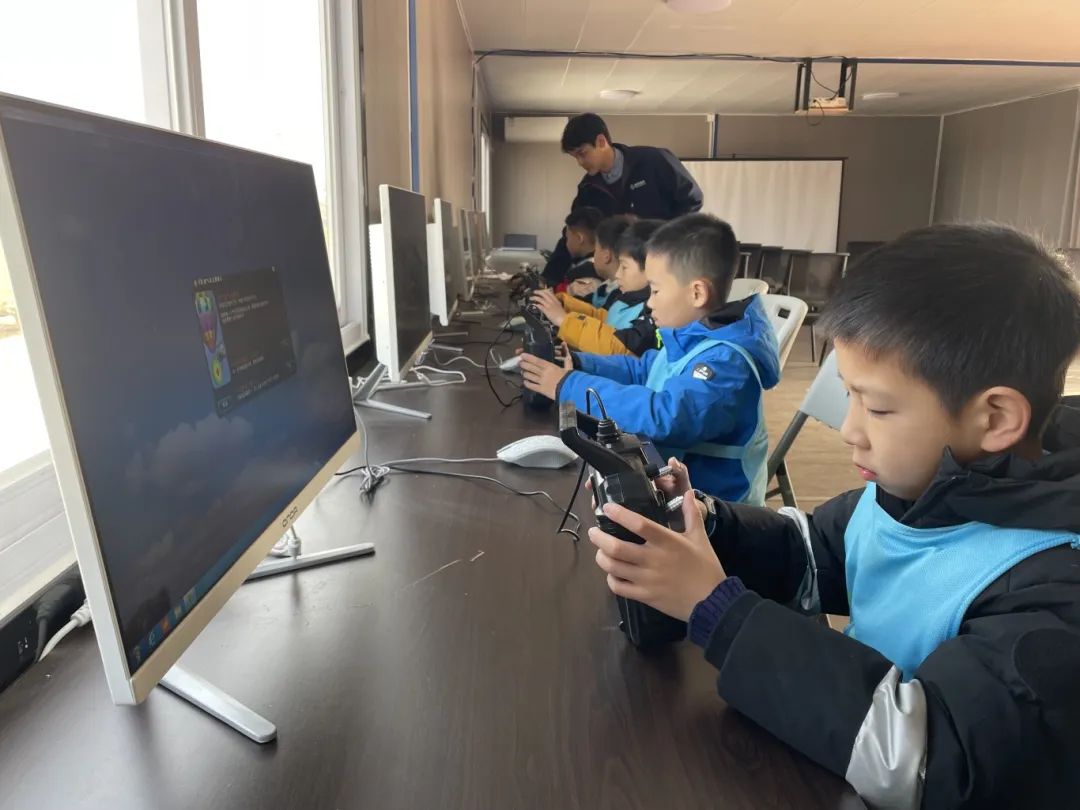 完成理论知识学习后,在专业教练指导下,小学员们进行无人机模拟飞行操作。他们坐在飞行模拟器前,认真按照操作规范,专注于操控虚拟无人机,体会不同操作指令对飞行姿态的改变,熟悉飞行控制流程与技巧。