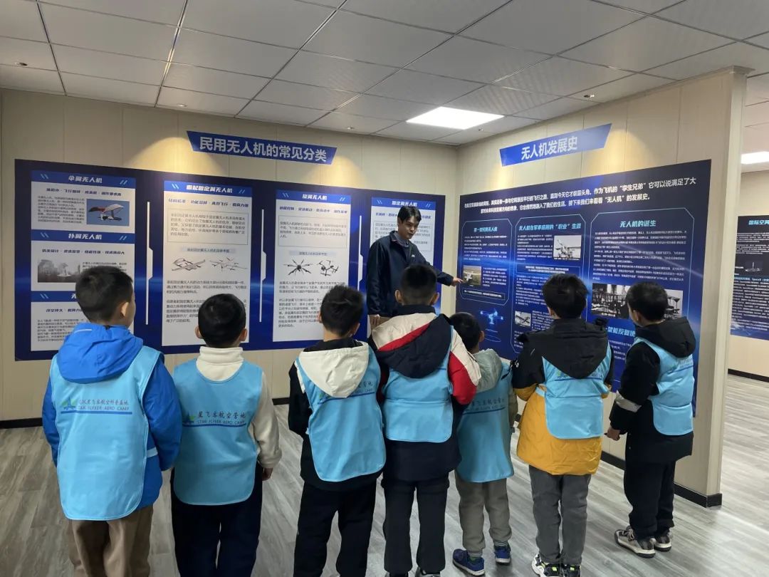 随后,小学员们走进旭日蓝天展厅与组装车间,实地观察各型号无人机。他们仔细查看无人机外观构造,了解不同部件形状、材质与连接方式,探究部件功能,明晰从零件到整机的组装逻辑,这过程锻炼了小学员们观察与思考能力,加深对无人机飞行原理与基本常识的理解。