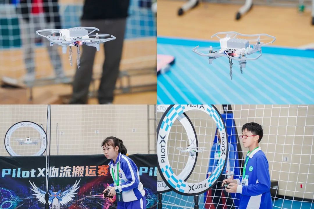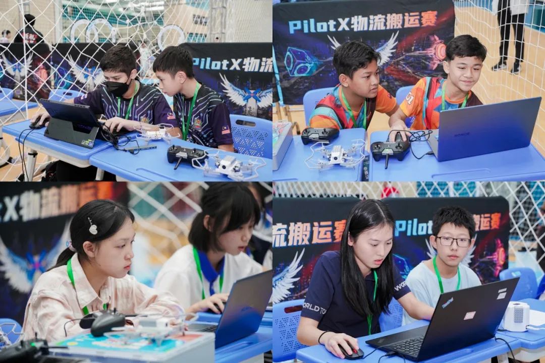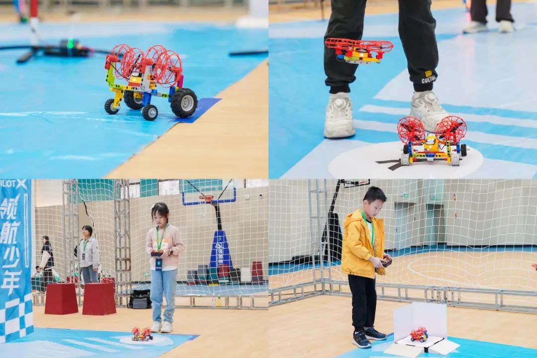 选手们手握遥控器,游刃有余地展现了出色的操控技巧和快速反应能力,精准控制无人机和小车穿越障碍,完成各项挑战。