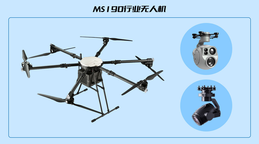 系统以MS190六旋翼载重无人机为核心,集成了球形吊舱与高空打击载荷装备,不仅具备侦查能力,还能执行高空打击任务,适用于部队演练、执法和反恐等多种领域。