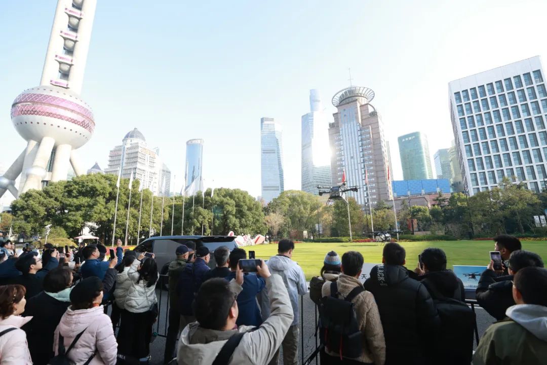 此次飞行地点在上海国际会议中心东方滨江大酒店(活动合作伙伴),又被称作陆家嘴的“户外机库”。活动中,“陆地航母”飞行器从户外草坪缓缓升空,在东方明珠塔前完成了一系列复杂的飞行动作,并在空中“打卡”上海的“三件套”标志性高楼——上海环球金融中心、上海金茂大厦、上海中心大厦。我们也因此成为首个飞越陆家嘴核心区域的飞行汽车品牌。在复杂的城市低空气象和电磁环境中完成飞行动作,不仅考验了飞行器智能操控系统的先进性,也对稳定性和可靠性提出了极高的要求。“陆地航母”成功完成试飞,我们的技术实力和安全性也得到了充分验证。