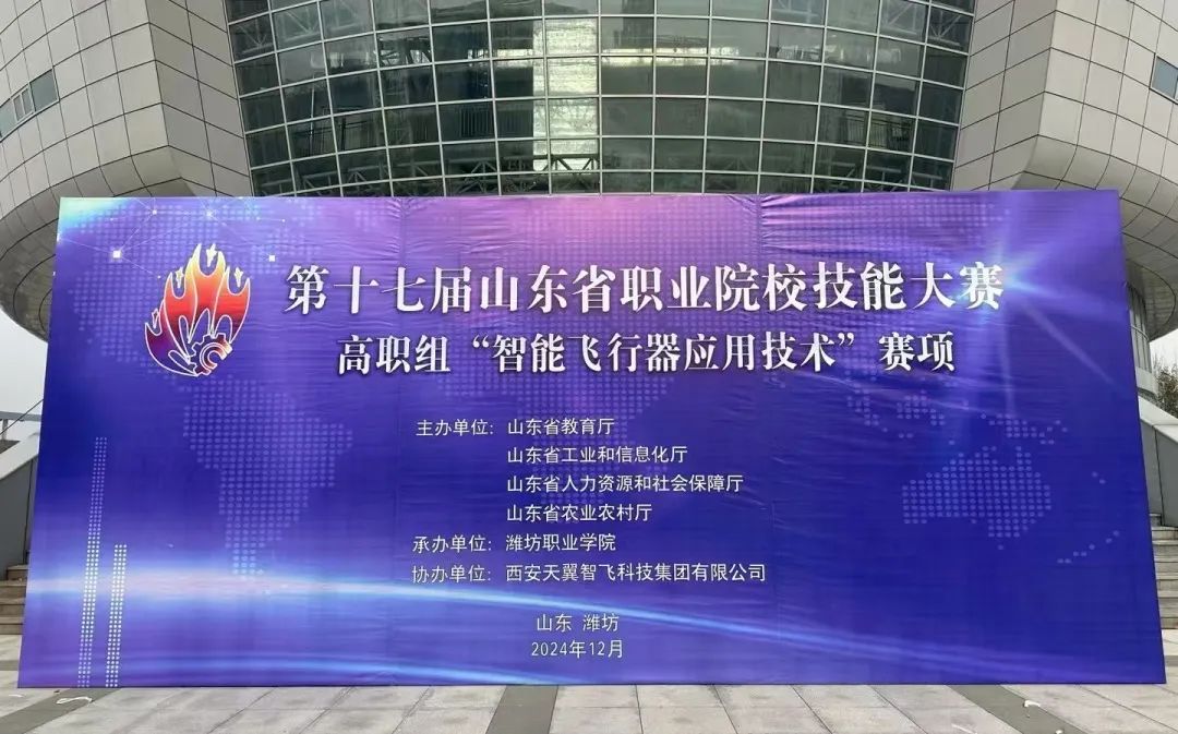 2024年12月11日-12月12日,第十七届山东省职业院校技能大赛智能飞行器应用技术赛项圆满完成。赛事由山东省教育厅、山东省工业和信息化厅、山东省人力资源和社会保障厅、山东省农业农村厅主办,潍坊职业学院承办,西安天翼智飞科技集团有限公司提供设施设备保障与技术支持。
