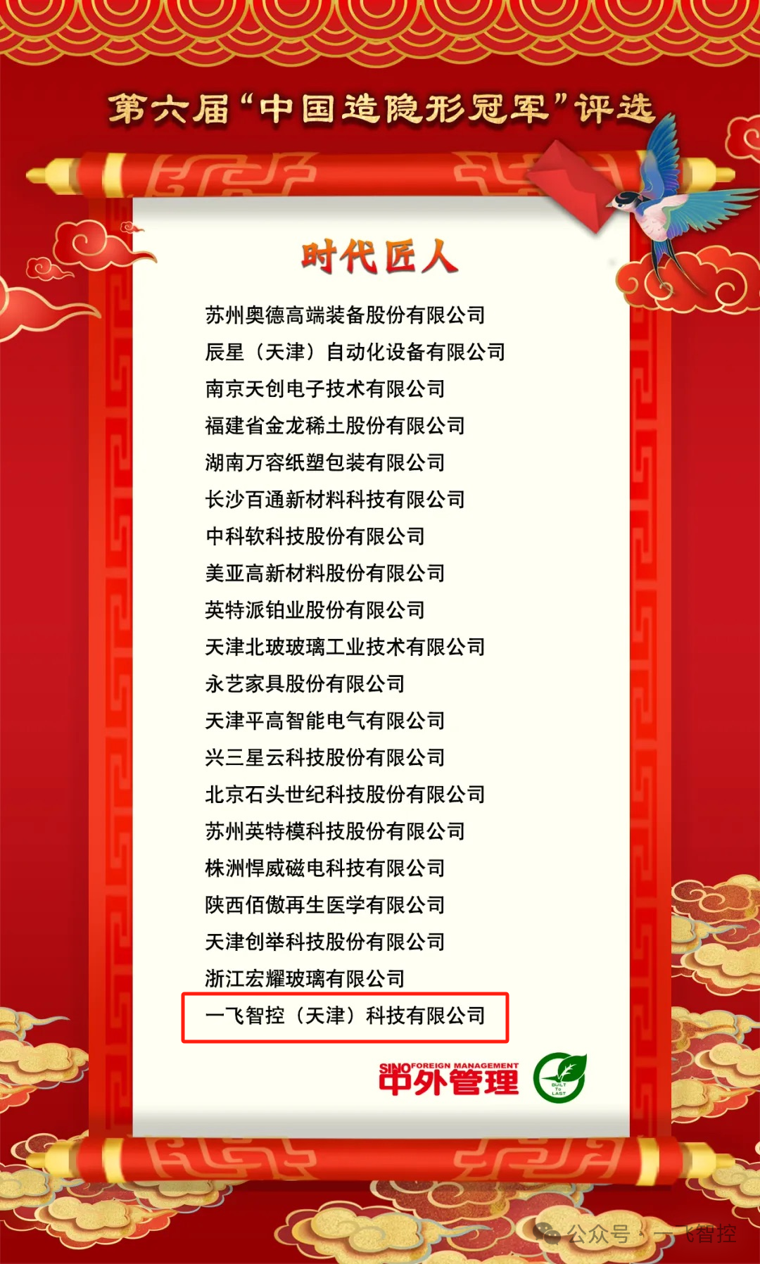 12月19日,第六届“中国造隐形冠军” 恳谈会在重庆璧山区盛大召开。此次会议旨在深入贯彻落实习近平总书记2024年对专精特新企业在实现新质生产力发展中占据核心地位的重要指示:“推进科技创新,要在各领域积极培育高精尖特企业,打造更多‘隐形冠军’,形成科技创新体集群。”从而助力实现“中国式现代化”。经过18位国内外顶级企业实战派专家、著名商学院院长、投资机构、媒体等多方严谨细致评定,一飞智控荣获“时代匠人”称号。