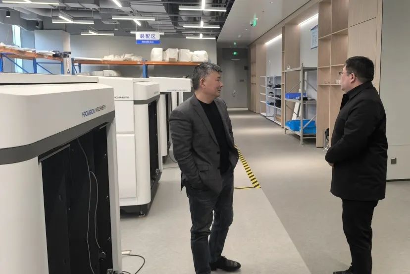 接着,王洪兵带领他们移步至生产部门进行实地考察。在生产车间内,工人们正忙碌而高效地组装无人机机场的各项设备。蔡文局长及其他领导成员细致地了解了生产线的运作流程、产品质量监控体系以及当前的产能状况,展现了浓厚的兴趣与关注。