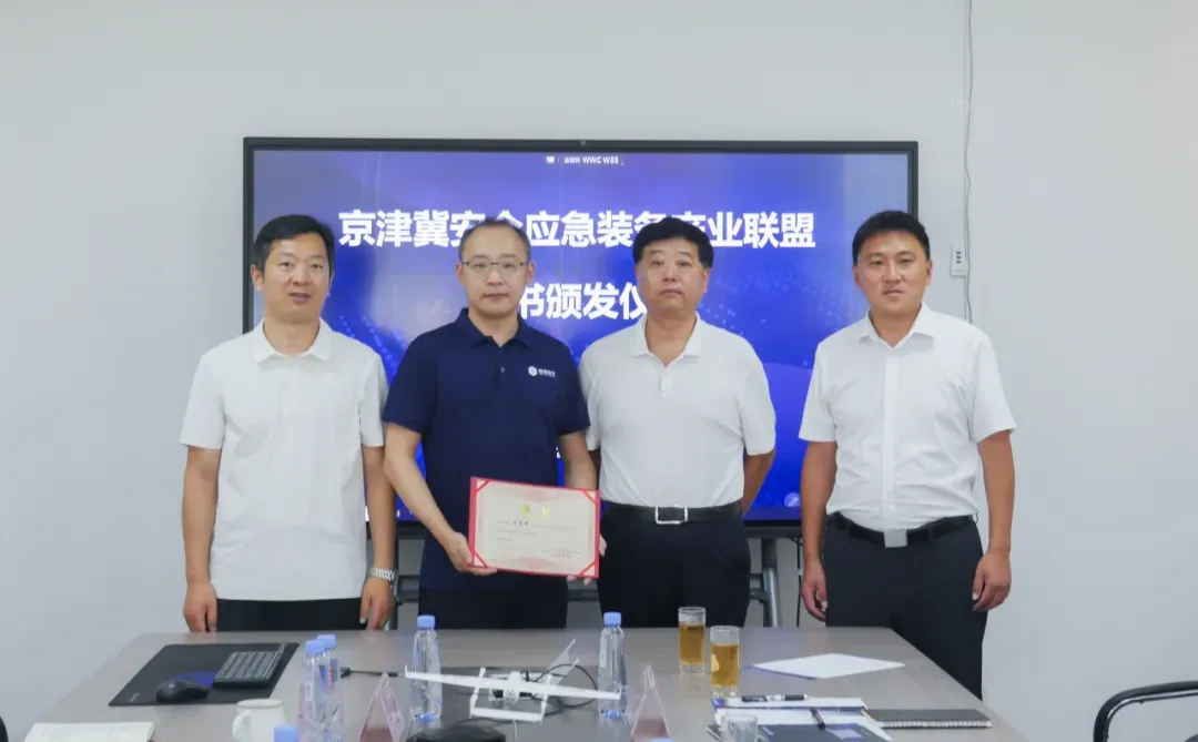 北京市经济和信息化局及京津冀安全应急装备产业联盟一行莅临蜂巢航宇调研指导。蜂巢航宇常务副总经理刘铁军向张占锋处长等领导介绍了公司近年来在应急通信保障业务中的成果。蜂巢航宇获选为京津冀安全应急装备产业联盟副理事长单位,公司副总经理管宏伟也被选为联盟副理事长。