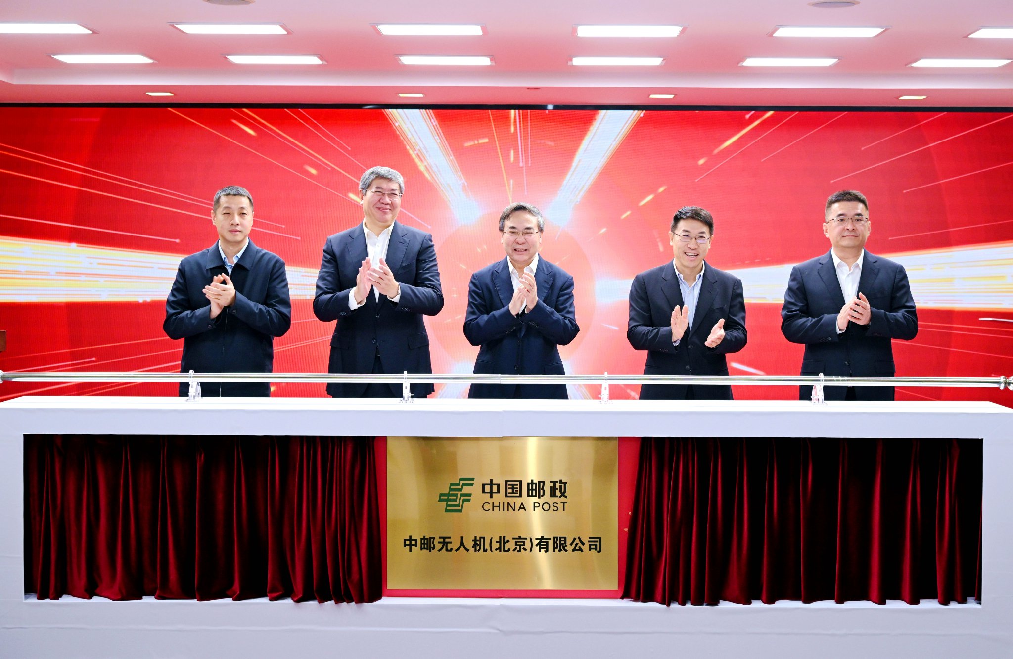 中国邮政集团有限公司党组书记、董事长刘爱力,以及来自国家发展改革委、财政部、交通运输部、国家邮政局、中国民用航空局等部门的同志共同为中邮无人机公司揭牌。