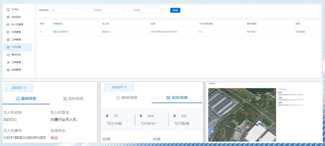 全面记录了每次飞行作业的关键信息,包括所属项目、使SN码(序列号)、任务执行次数、拍摄的图片数量等数据。查看飞行日志,便于追踪、管理和分析飞行作业。