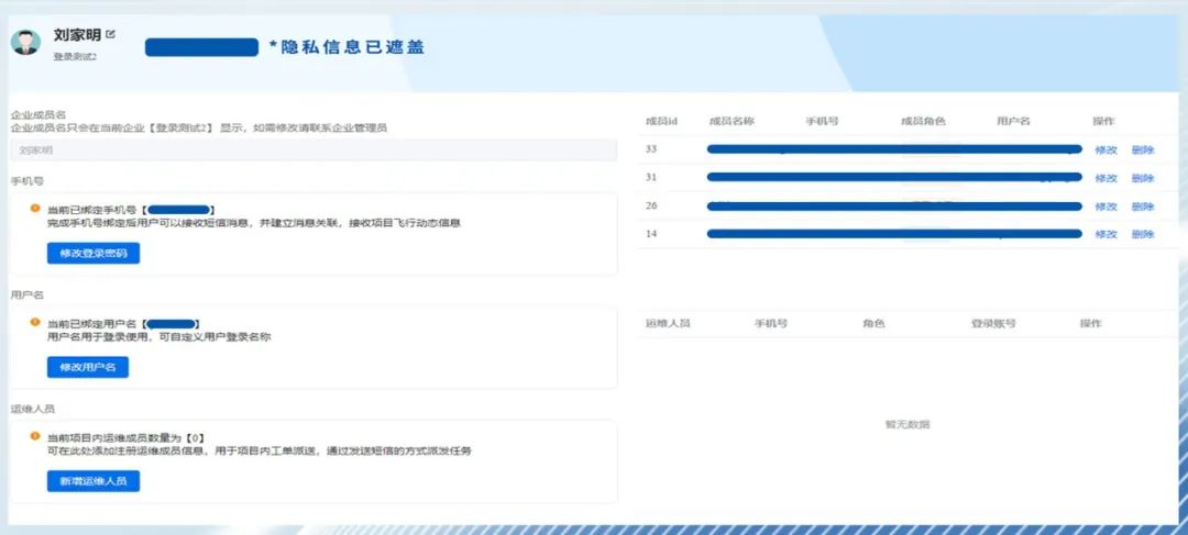 支持用户自主修改用户名和密码,增强账户安全性。此外,平台还具备新增运维人员的功能,便于团队高效管理和灵活分配权限,确保工作顺畅进行。