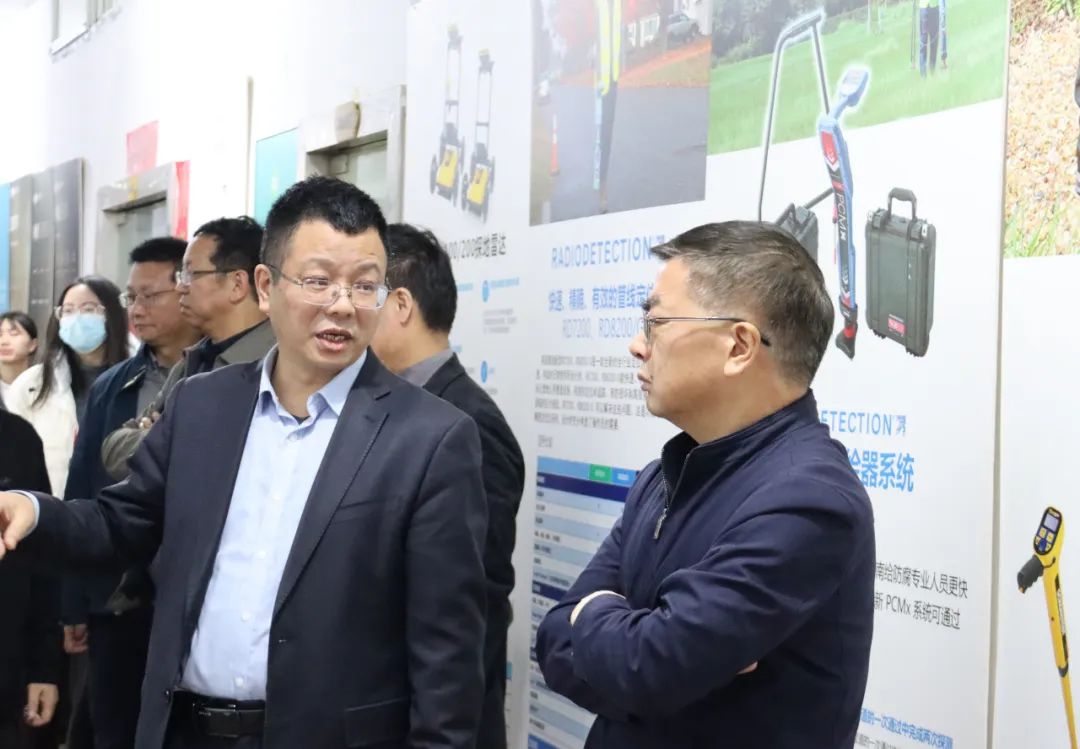 在深圳市鹏锦科技有限公司总经理刘雯亮的陪同下,大家参观了包括大疆机场、无人机、视觉位移监测系统等在内的多种应用产品及系统方案,听取了公司在管线探测、三维激光扫描、工业测量等领域所取得的项目成果介绍。2024年里,深圳市鹏锦科技有限公司在低空经济与“北斗+”领域展开了积极且深入的探索,在科技创新与研发层面实现了重大突破。公司成功开发了70余项无人机AI识别应用场景,并与武汉大学、国防科技大学等知名高校搭建了产学研合作平台,为深圳市测绘地理信息行业的高质量发展提供了积极助力。