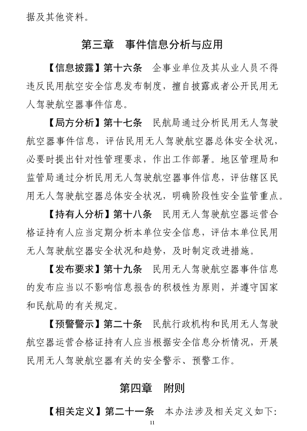 为落实民航局关于加快建设低空飞行安全监管体系的部署,及时、准确掌握有关无人驾驶航空器安全运行信息和数据,加强分析利用,促进民用无人驾驶航空器安全运行,民航局航安办起草了《民用无人驾驶航空器事件信息管理办法》。