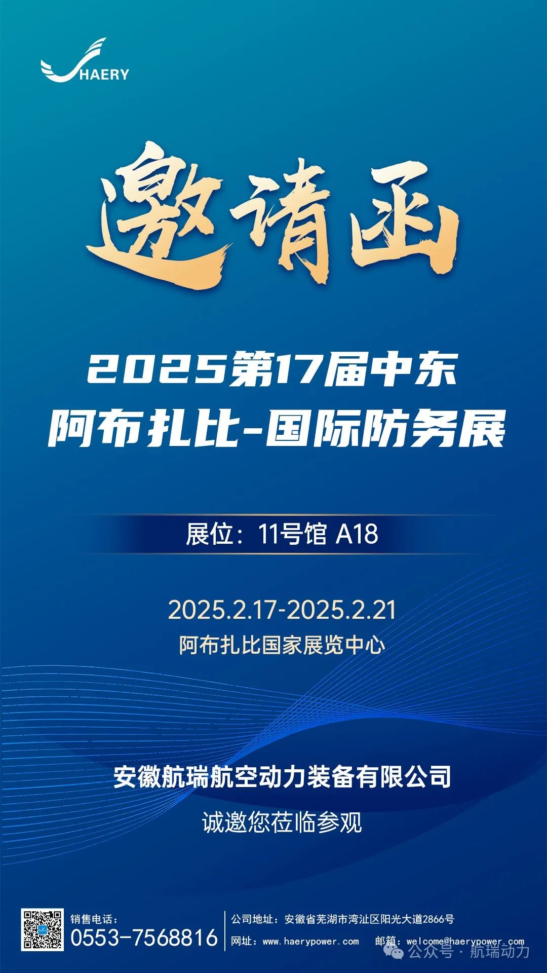 航瑞动力诚邀各位专家及合作伙伴莅临阿布扎比国际展览中心11号馆A18展位航瑞展区参观交流。