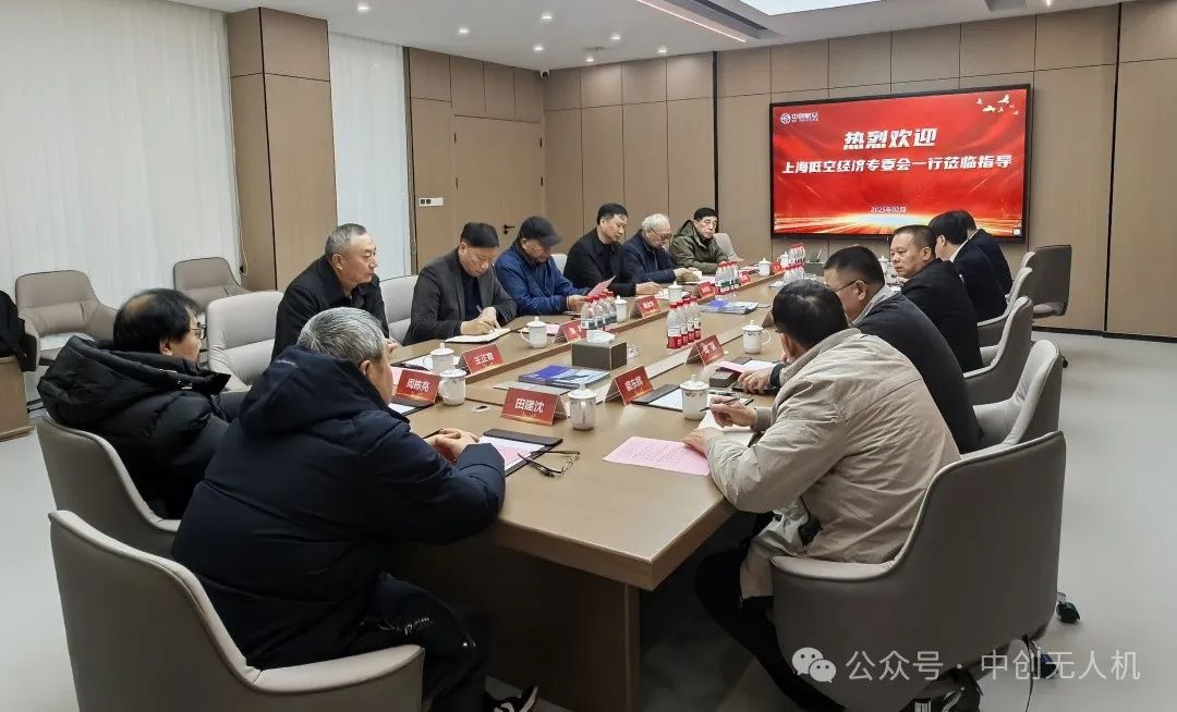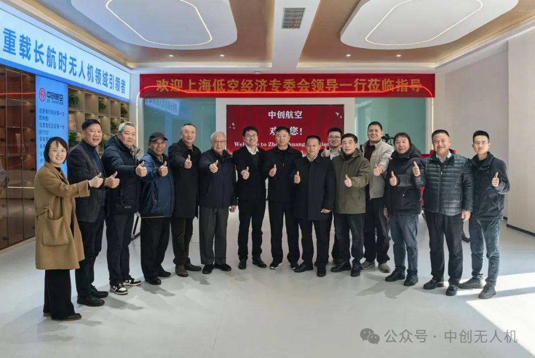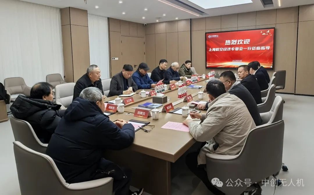 近日,上海现代服务业联合会低空经济专业委员会(以下简称“低空专委会”)主任、原民航华东局副局长朱州龙,名誉主任、原上海航空总经理范鸿喜一行11人到访嘉兴中创航空技术有限公司(以下简称“中创航空”),双方就低空经济的发展、无人机技术的应用及未来合作机遇进行了深入探讨。