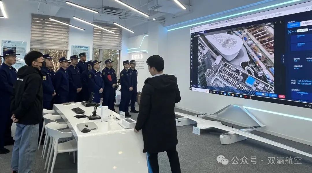 2.智慧管理平台演示:通过双瀛航空的无人机智慧管理平台,消防人员体验了实时监控、远程调度、数据分析等功能。平台支持多机协同作战,可同步处理灾害现场的空中巡查、热源定位与三维建模任务,与闵行消防现有指挥系统形成互补。