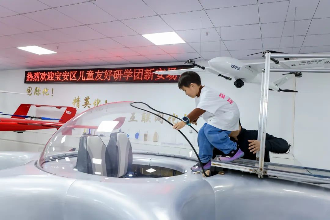 当宝安区各校的孩子们踏入智航的大门,瞬间被展厅中的载人飞碟所吸引,惊叹之声此起彼伏:“看,那是真正的飞碟吗?”