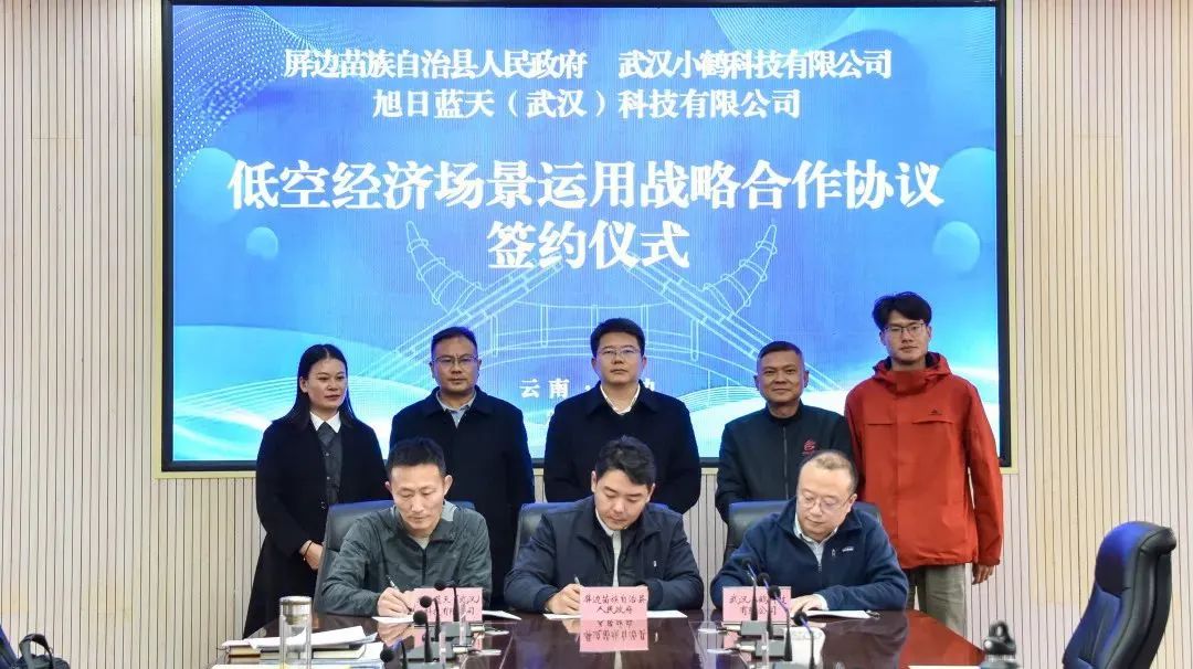 2月21日,旭日蓝天(武汉)科技有限公司、武汉小鹤科技有限公司与屏边县人民政府成功签署战略合作协议,屏边县领导付田跃、沈策、甘娟以及县级有关部门领导共同见证了这一重要时刻。三方就深化合作、以低空经济助力乡村振兴展开了深度交流与探讨。