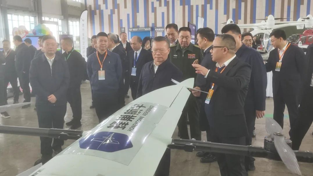 活动期间,蜂巢航宇王总向贵州省委常委、贵阳市委书记胡忠雄详细介绍了公司情况,重点讲解了蜂巢航宇在低空经济领域的技术优势和产品应用。王总展示了公司最新的无人机平台,阐述了其在应急通信、环境监测等领域的应用。胡书记在蜂巢展位驻足聆听,并对公司的技术创新和产品性能产生浓厚兴趣,认为这些成果对贵州省低空经济产业发展具有重要意义。