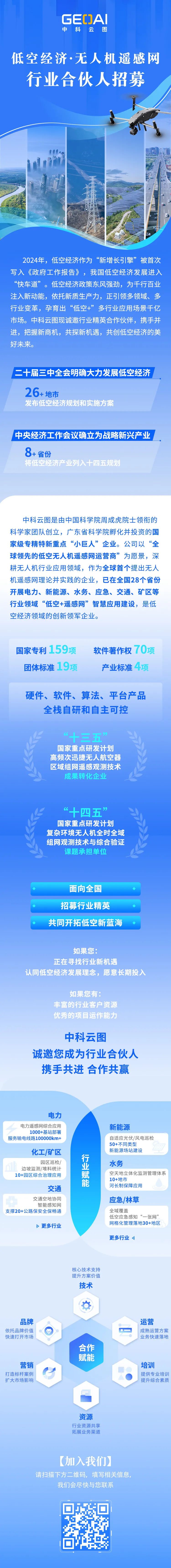 中科云图作为低空无人机遥感网领域的先行者和创新者,具有广东省科学院强大的科研背景和丰富的行业市场经验,是国家专精特新重点“小巨人”企业,业务网络覆盖全国,以“全球领先的低空无人机遥感网运营商”为愿景,致力于安全、智能、自主、可控的低空无人机遥感网产品的研发、生产、销售及遥感网建设与运营服务。