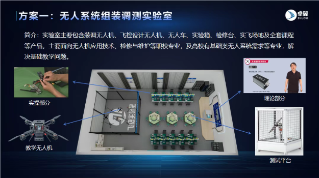 在教学解决方案上,飞思实验室设置四大实验室:无人系统组装调测实验室、人工智能应用开发实验室、飞行器控制设计与应用实验室、无人系统集群协同应用实验室,为院校提供底层开发、单体/集群智能控制等领域的教学平台与实验资源,解决高校无系统实验资源、无企业真实案例等问题。
