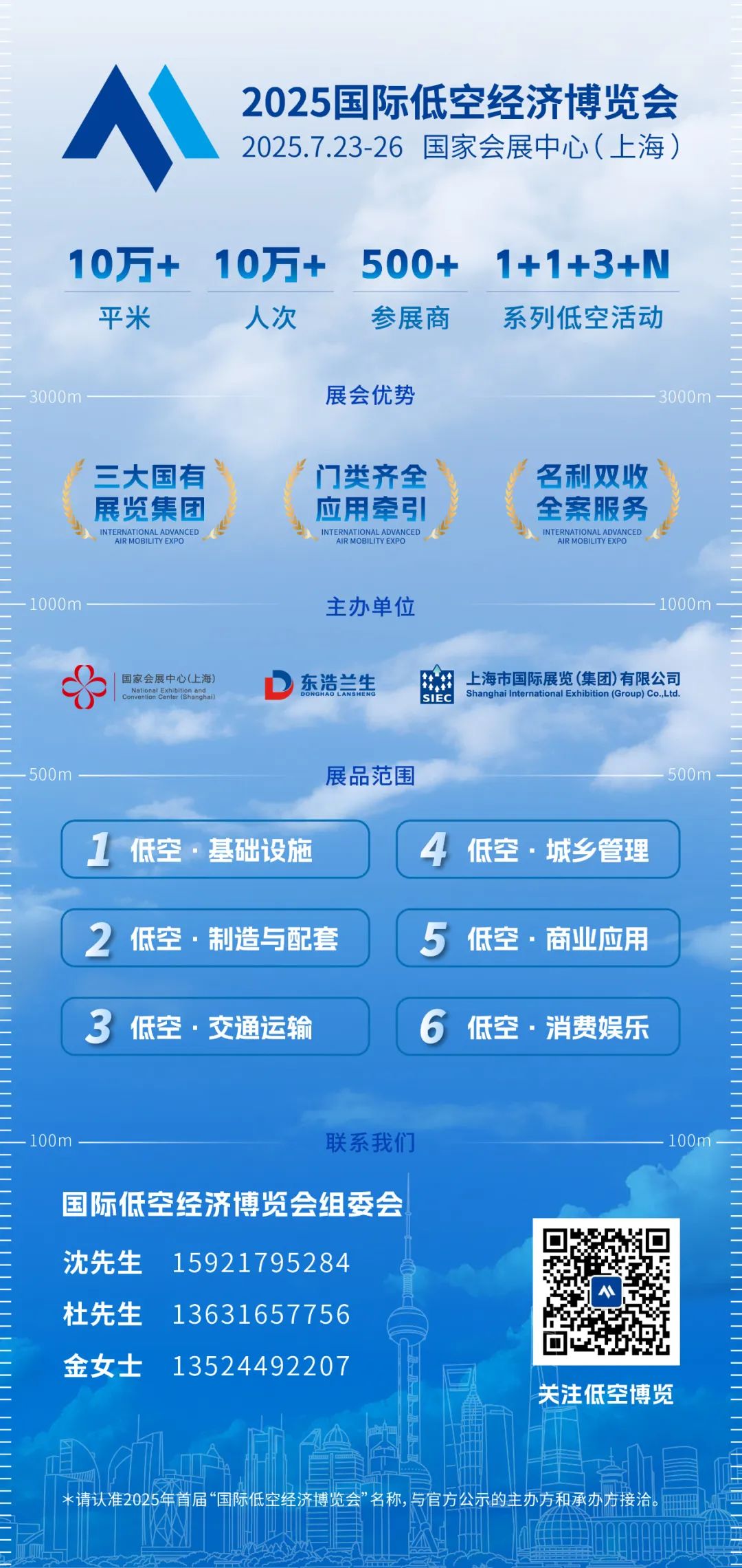 2025年7月23-26日,首届国际低空经济博览会将在国家会展中心(上海)盛大开幕。作为行业内备受瞩目的盛会,此次展会吸引了诸多低空行业头部制造商、服务商与运营商。