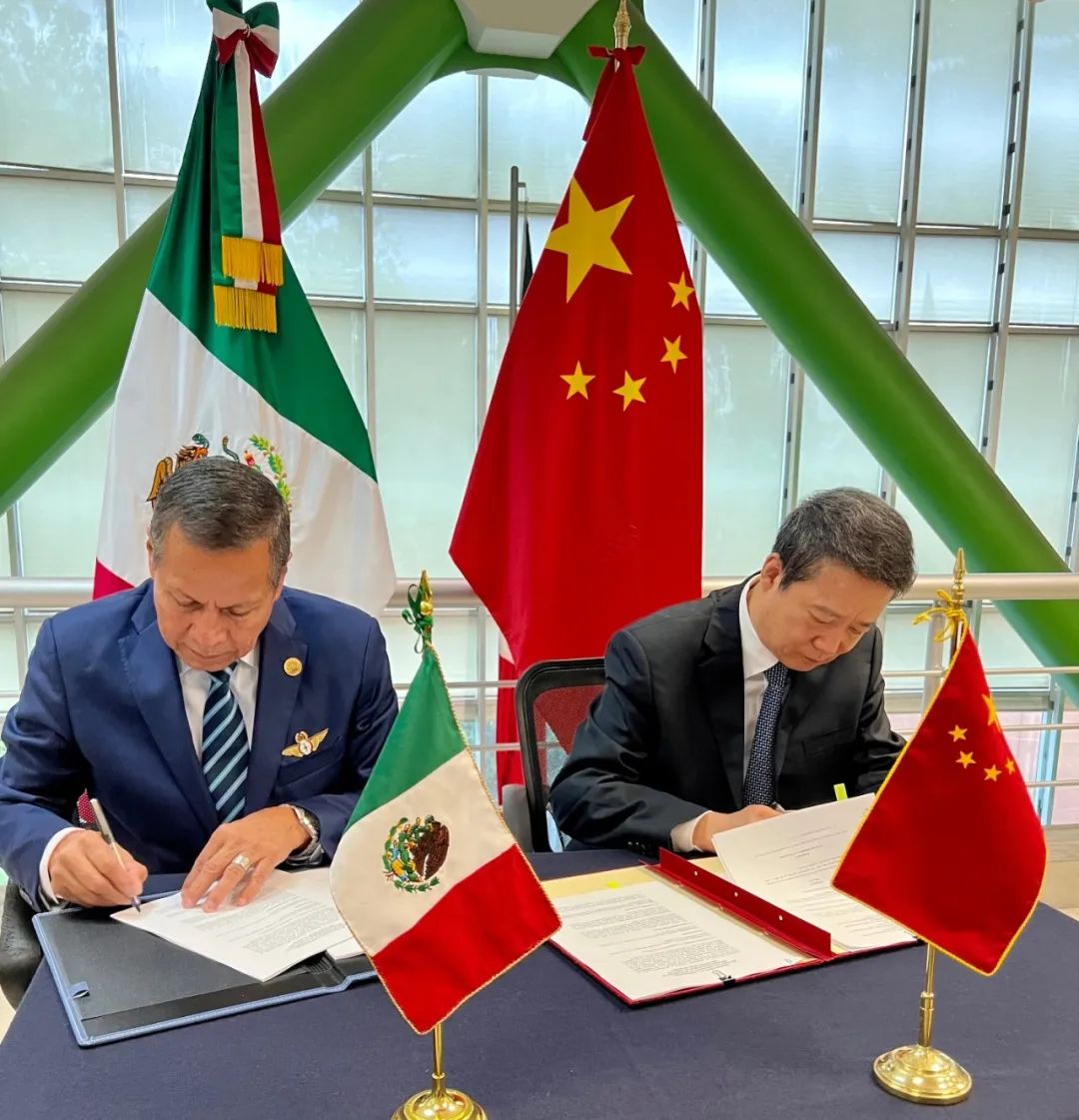图:2023年8月,墨西哥联邦民航局局长米格尔·恩里克与中国民用航空局副局长崔晓峰签署加强中墨民航全面合作的谅解备忘录(图片来源:墨西哥联邦民航局(AFAC)官网)