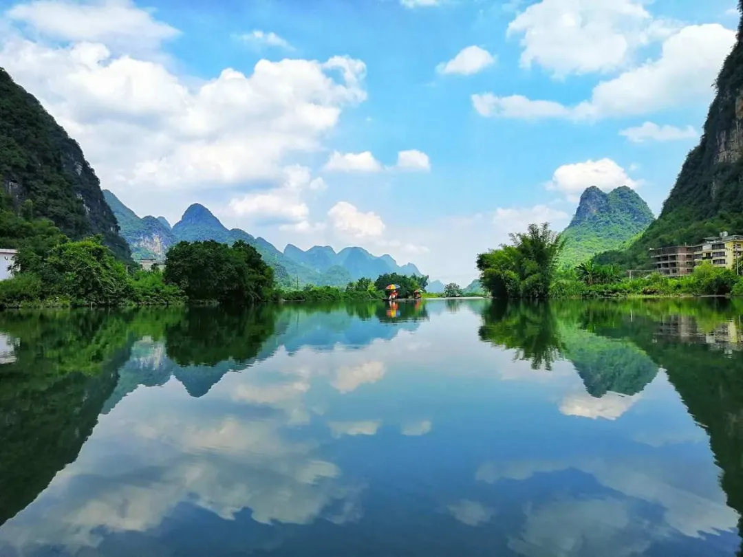 早餐后,乘车前往兴坪古镇,乘船游览兴坪漓江风光,兴坪漓江段是漓江最精华,风景最美的一段。两岸群峰竞秀,碧水萦回,欣赏风景如画的兴坪佳境、20元人民币背景图案、黄布倒影等漓江绝色景观,亲身感受"人在天上走,船在画中游"的神奇仙境。前往 20 元人民币的风景处。