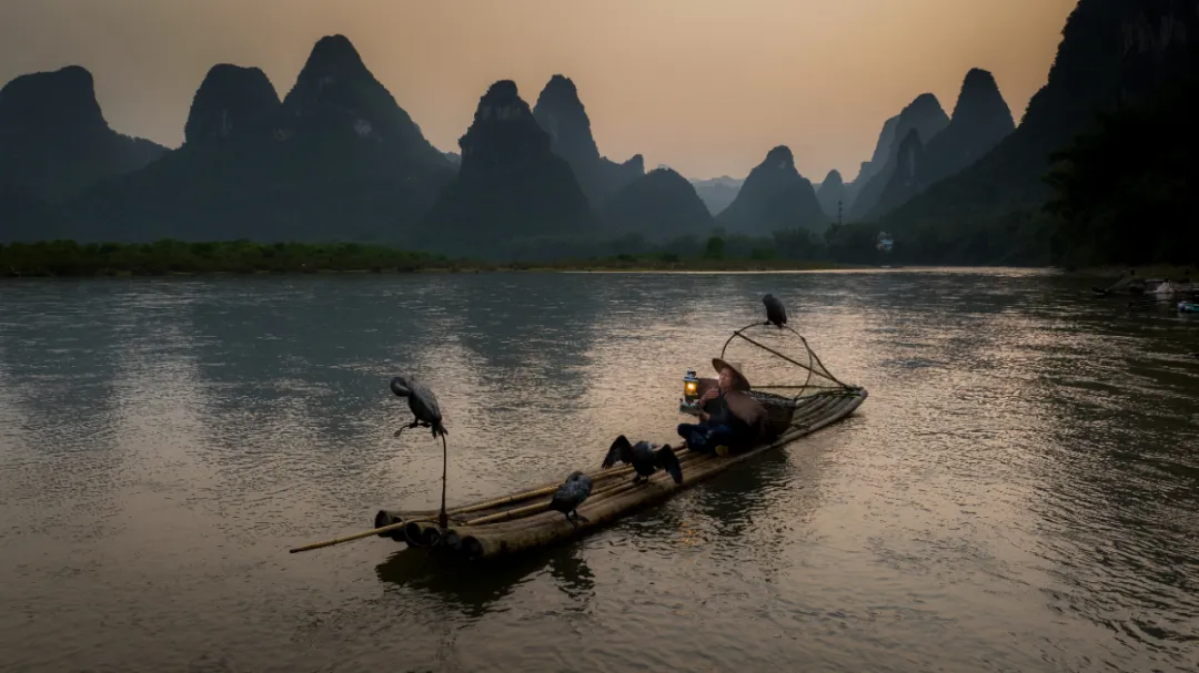 【黄瀑倒影】因黄色的石壁倒影江中, 如黄布铺江而得名。这里江面宽阔,水平如镜,翠竹护堤,奇峰绵延,群峰倒影江中,摄入镜头,分辨 不出哪是山哪是影,“黄布倒影”遂成漓江著名胜景。漓江边的【渔鹰唱晚】拍摄老爷爷鱼鹰扑鱼撒网 表演漓江渔民利用鱼儿的趋光性,驯养鸬鹚捕鱼;漫步【兴坪古镇】,兴坪古镇历史悠久,依山傍水,风景荟萃。三国时期东吴在此设熙平县治,后来熙平谐音而改名兴坪。兴坪古街是一条长1公里多的石板街从兴坪古镇东南至漓江榕树潭、古渡码头,便于居民、客商来往,各省的会馆建筑于古街的两旁,各类砖瓦结构的古建筑大部分保存完好。在这里我们可以欣赏新版中国人民币20元背面图案原景,并合影留恋。下午乘车前往阳朔,晚上西街自由活动。入住酒店休息。