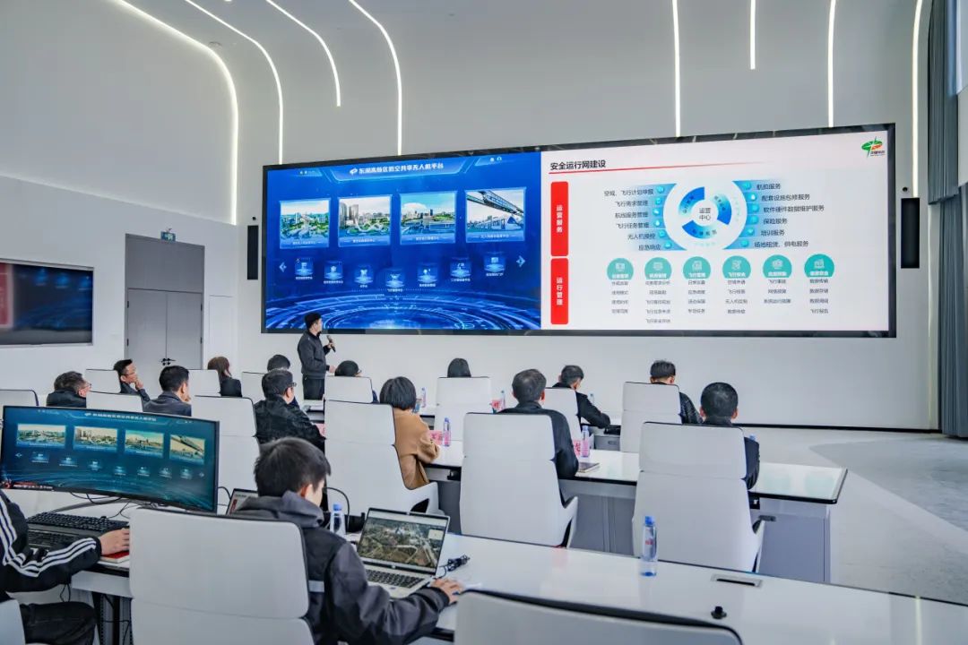 调研过程中,考察团前往东湖高新区城运中心参观了普宙无人机指挥中心,并现场查看九龙水库低空共享无人机部署点位,双方就低空创新应用和空天地一体化低空治理解决方案进行了交流讨论。
