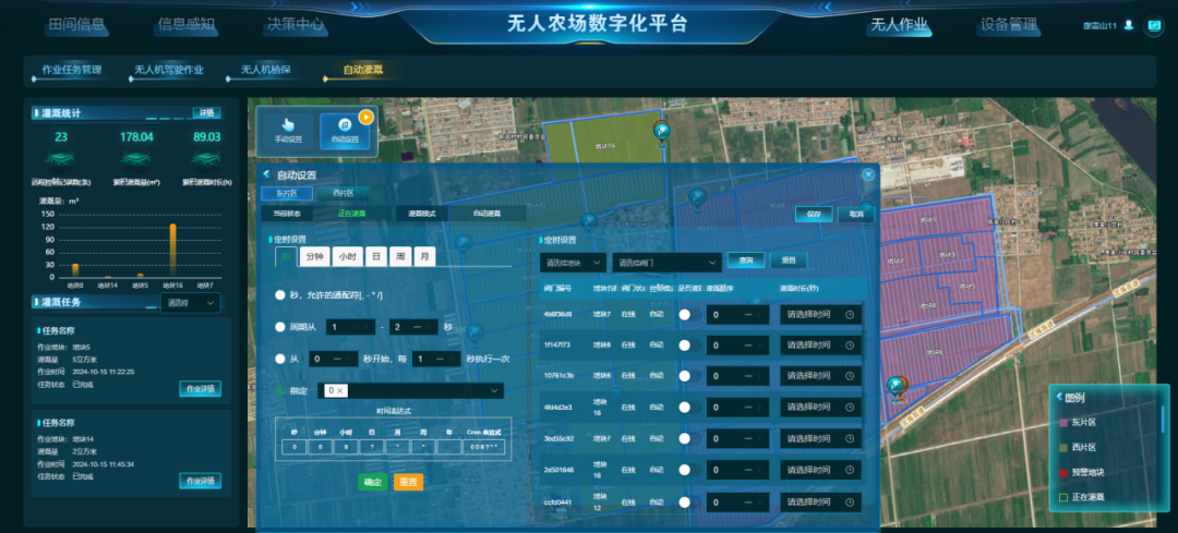 当传统农业还像老式机械表般依赖人工经验时,智慧农场已化身"智能手表",通过作业任务分配、处方自动生成、最优路径规划、工况实时监控等使农机作业从此告别粗放;无人机植保与自动灌溉系统化身"农田管家",从防治任务管理到作业轨迹追踪,从水肥精准调控到多阀联动控制,全程可视化、可追溯;而田间劳作的身影,正从弯腰躬耕的农民,变为电脑前分析数据和遥控手柄的"数字农夫"。