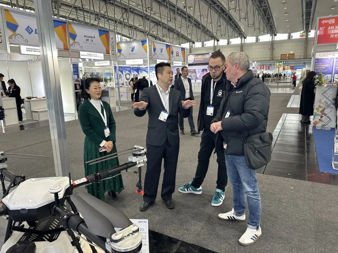 开幕首日,精飞展台迎来多批国际采购团与科研机构代表。德国工业4.0专家在参观完精飞集团展厅后表示:"这种将卫星导航与无人机结合的深度方案,为欧洲智慧农业升级、更为广泛的无人机应用提供了新可能。"精飞团队现场与多家国际企业达成初步合作意向。