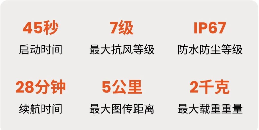 自主研发飞控架构与升级版飞控系统,让水手4+灵活适应复杂干扰环境,飞行更顺滑、悬停更精准。开机后最快45秒起飞,自动校准省时省力,大幅缩短任务启动时间,高效应对紧急任务。