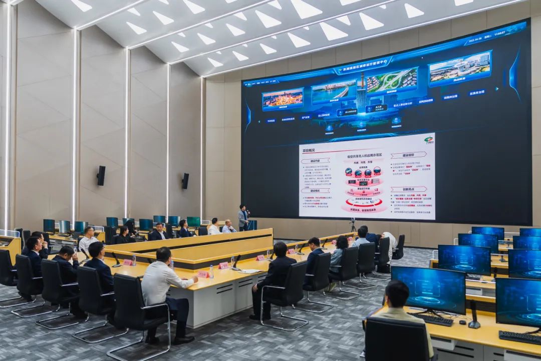 在东湖高新区低空共享无人机应用示范区项目指挥中心,工作人员通过低空共享无人机平台,向领导们展示了“空天地一体化”城市治理全新模式。调研团详细了解项目建设、运行情况和应用成效,现场感受无人值守自动巡检系统在城市治理领域的创新实践,并围绕潜在需求展开探讨。