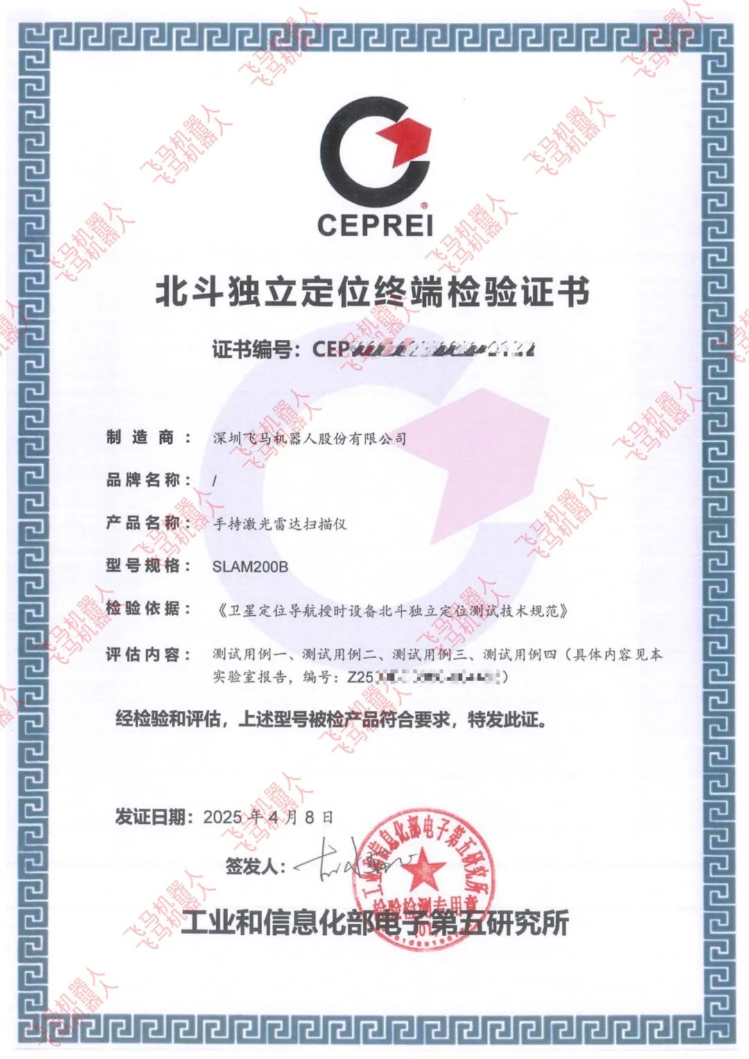 此外,飞马机器人全新推出SLAM200单北斗版本——SLAM200B手持激光雷达扫描仪。目前,SLAM200B已通过我国单北斗终端检测认证,是业内极少数仅凭北斗系统实现高精度定位的设备。