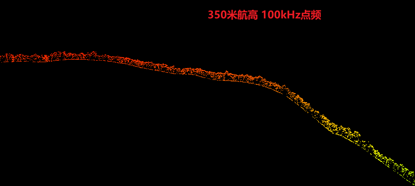 为测试D-LiDAR800载荷航高的极限值,本次测试基于100kHz点频,分别飞行300米及350米高度,对两组数据同位置进行剖面绘制、分析。如下图,可以看出350米航高下,地形点连续性同样可观,相较于300米飞行高度,无明显连续性缺失。