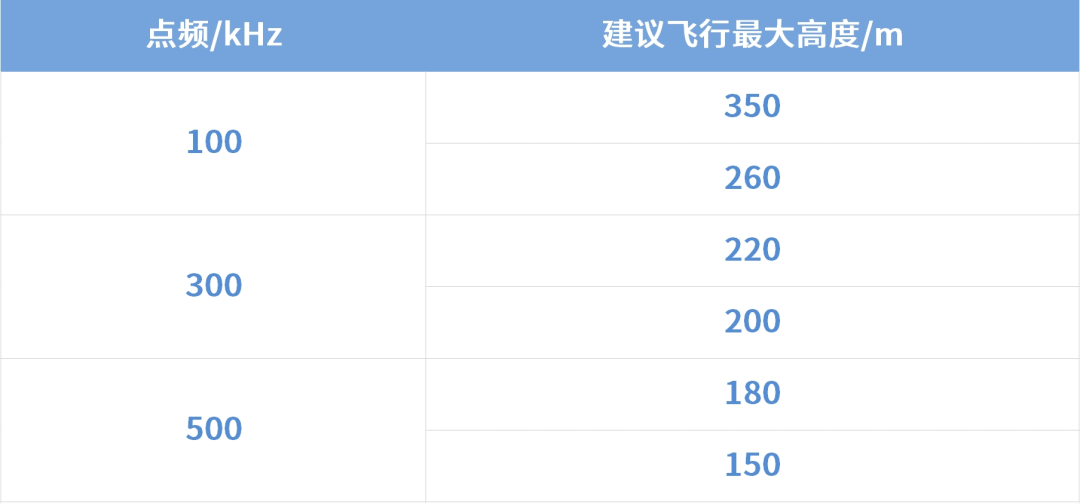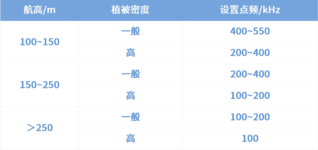 备注1:仅供参考,理论上相同飞行高度下,点频越低,穿透性越好。