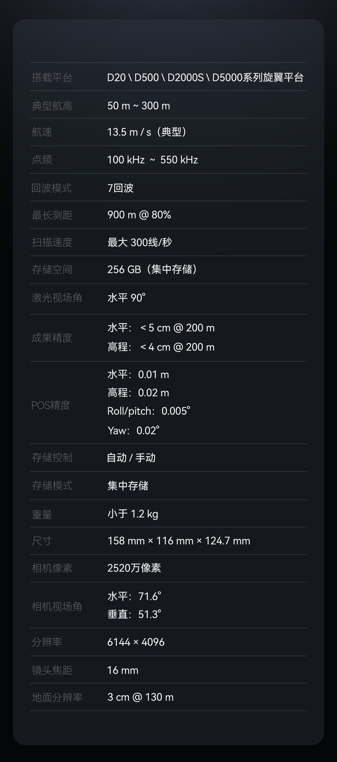 D-LiDAR800以飞马机器人自研高精度IMU及高性能测绘相机为依托,集成1550nm波长、5mm测距精度的单线扫描激光器,性能指标大幅跃升,重新定义“轻量化”激光雷达载荷,为用户带来更高精度、更高可靠性、更高易用性的使用体验。
