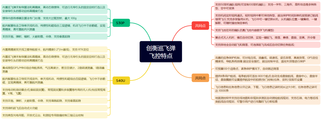 巡飞弹飞控重点推荐S30P和S40U,两者的主要区别在于:S30P的航向解算包含卫导单天线机动、纯惯性和磁组合三层逻辑;S40U的航向解算包含卫导双天线定向、单天线机动、纯惯性和磁组合四层逻辑,且S40U支持油动复合翼,在航线精度、定位精度上更高,接口更丰富。