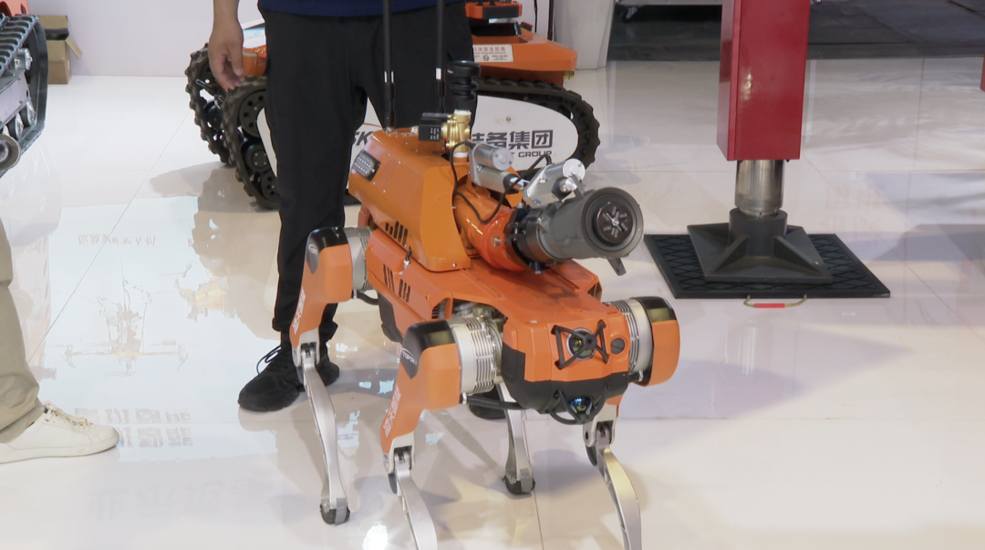 江苏省安全应急装备技术创新中心项目经理汤争争正介绍着集定位、远程协作和应急避险等多种功能为一体的AR眼镜与5G智能手机矿灯的组合;一旁,江苏一二三安全科技有限公司总经理韩刘勇正通过实验展示自家产品的优秀性能;另一个展位上,身着“科技白”的徐工“钢铁螳螂”ET121步履式挖掘机和XUV25伴随机器人更是吸引了众多参展观众前来咨询……