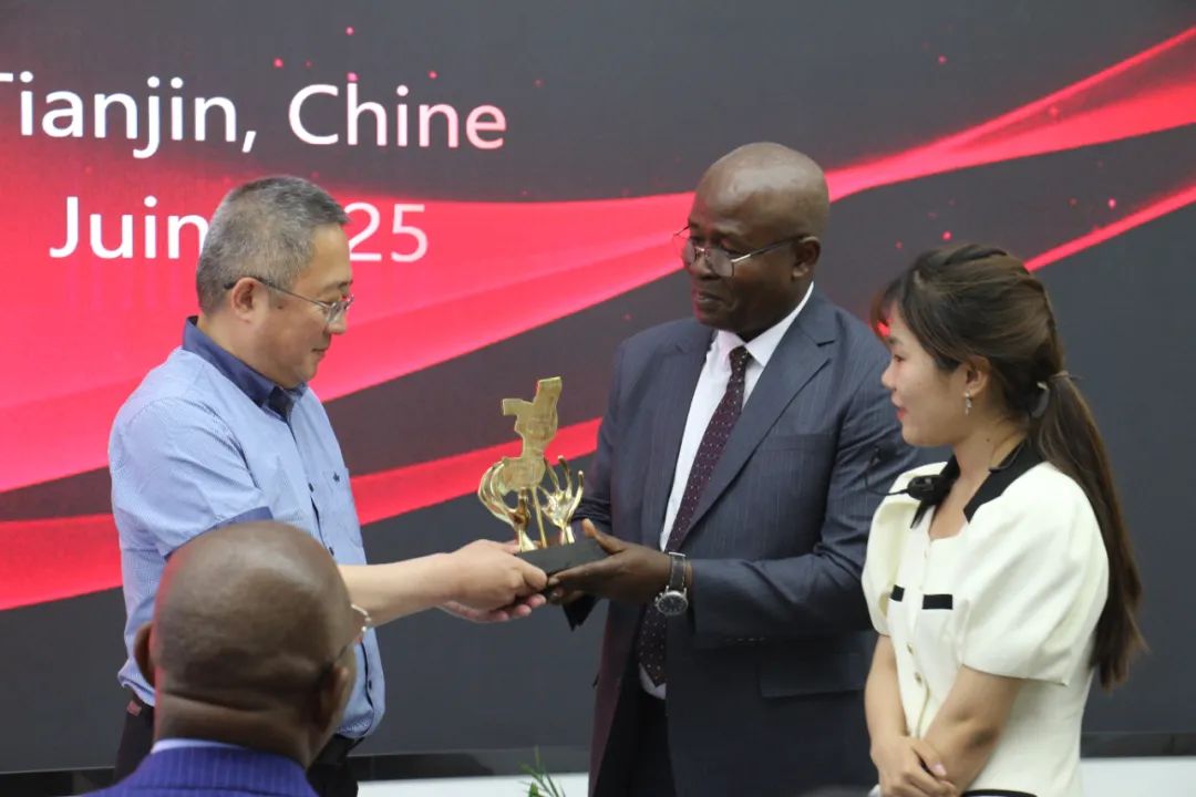 在座谈交流结束后,双方互赠礼物,飞马机器人向刚果(布)区域航空合作研修班赠送了无人机模型等纪念品,刚果(布)区域航空合作研修班则回赠了具有本国特色的礼品,以此表达对彼此的友好情谊与合作期许。