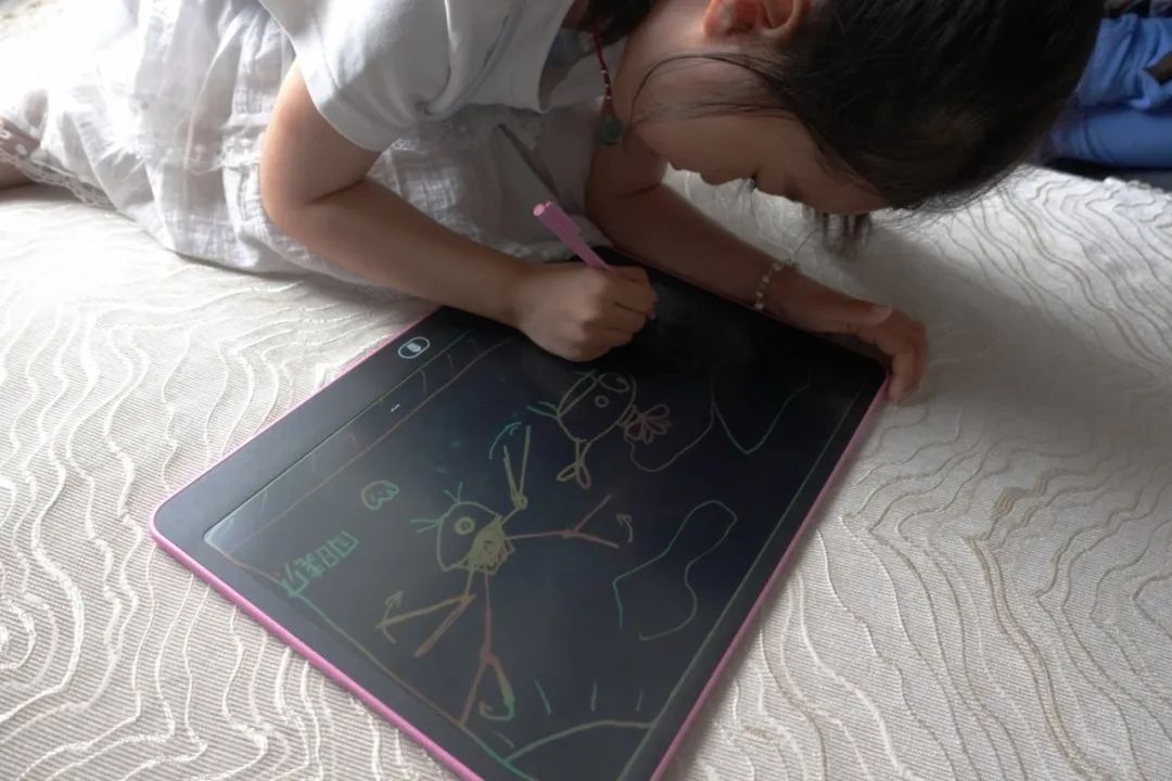 才 6 岁的她,自豪地和我们说:“我知道我爸爸是做无人机打药的,我还知道面条是麦子做的,米饭是水稻做的!”她甚至拥有一个自己的小无人机玩具,擅长画画的她,把无人机、海、田、爸爸妈妈和她一起画进了画里。