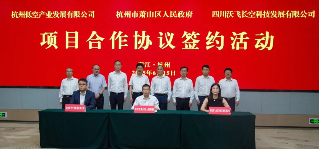 6月15日,杭州市萧山区与吉利科技集团旗下低空经济公司沃飞长空、杭州低空产业发展有限公司正式签署华东区域总部战略合作项目。杭州市委副书记、市长姚高员,杭州市委常委、萧山区委书记孙旭东,吉利控股集团董事长李书福,吉利科技集团CEO徐志豪,杭实集团党委书记、董事长钮健等出席并见证签约;萧山区副区长朱国军,吉利科技集团副总裁兼沃飞长空董事长顾文婷,杭州低空产业发展有限公司董事长刘晨代表三方签约。