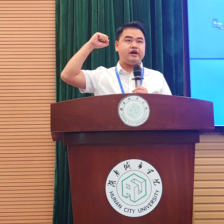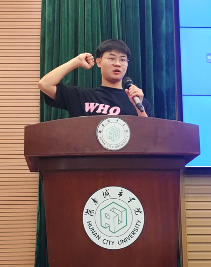 湖南工程职业技术学院龚玉叶老师作为裁判员代表庄严宣誓,湖南城市学院学生遆炳锐作为选手代表发表参赛宣言。