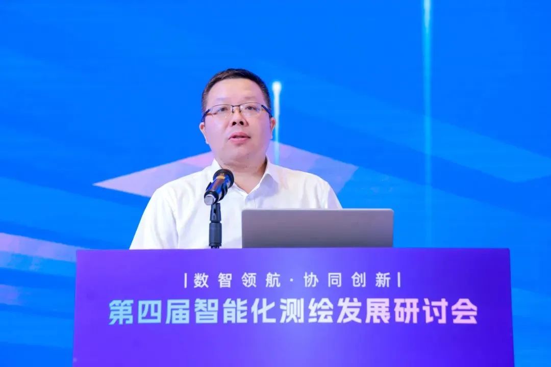 专题报告环节,司南导航副总裁孙中豪以“多源融合助力测绘装备转型升级”为题,深入剖析了AI智能测绘技术在地理空间领域的应用前景,向现场嘉宾分享了司南导航多源融合技术解决方案如何赋能现代测绘与工程建设,推动测绘向”时空智能”快速发展。