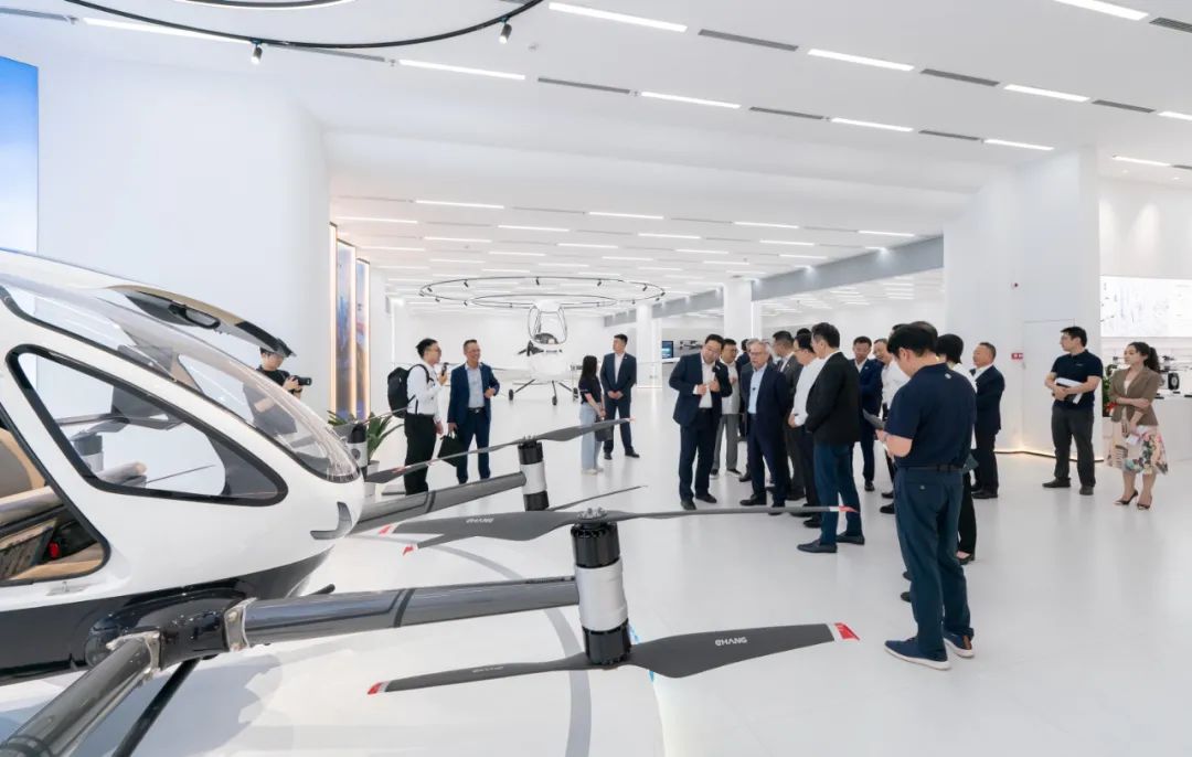 岑浩辉特首一行首先参观了广州亿航未来城的科技产品展厅,听取亿航智能发展历程介绍,详细了解公司在核心技术研发、产品创新智造、知识产权保护、国际业务开展等方面取得的成果,并对载人、物流、消防等电动垂直起降航空器(eVTOL)产品在适航取证、应用场景部署和商业化开展等方面的情况做逐一询问。参访团对亿航智能在低空经济领域取得的领先优势及在全球开展部署予以充分肯定和赞誉。