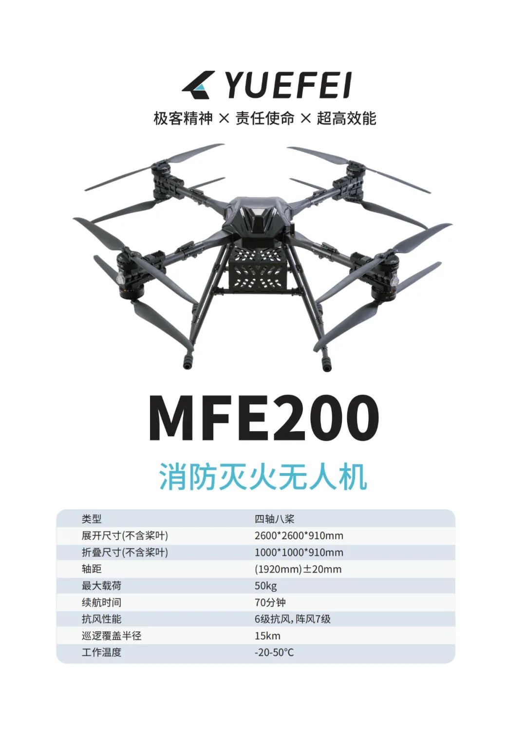 跃飞智能将携 MF120 侦察监测无人机、 MFE200 消防灭火无人机、凌云 U15 应急侦察无人机、鲸航 U100 应急消防无人机、 VTV300 复合翼侦察无人机、 LC20 激光甲烷遥测仪、 LC40 激光甲烷遥测仪、 YF-CL30 水流测速仪、消防负载以及飞鱼云管控平台无等多款核心产品参展,全方位展示无人机在消防救援、应急通信监测、油气泄露巡检、低空物流等多元场景的创新应用成果。诚挚邀请您一同探索低空经济新机遇,共享创新发展新成果。