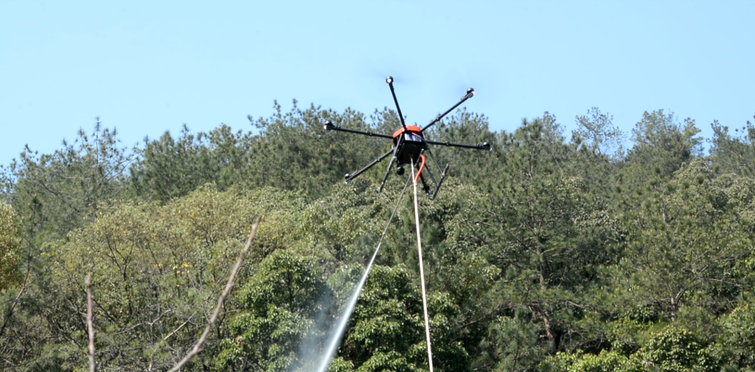 容祺的乾坤系列无人机使用平台+配载的模式进行作业。无人机可搭载干粉灭火弹、泡沫灭火弹、阻燃液等多类弹体,并将它精准投送至核心着火点,实现远程快速压制初起火源,尤其适用于传统人力难以快速到达的高坡、密林等区域。
