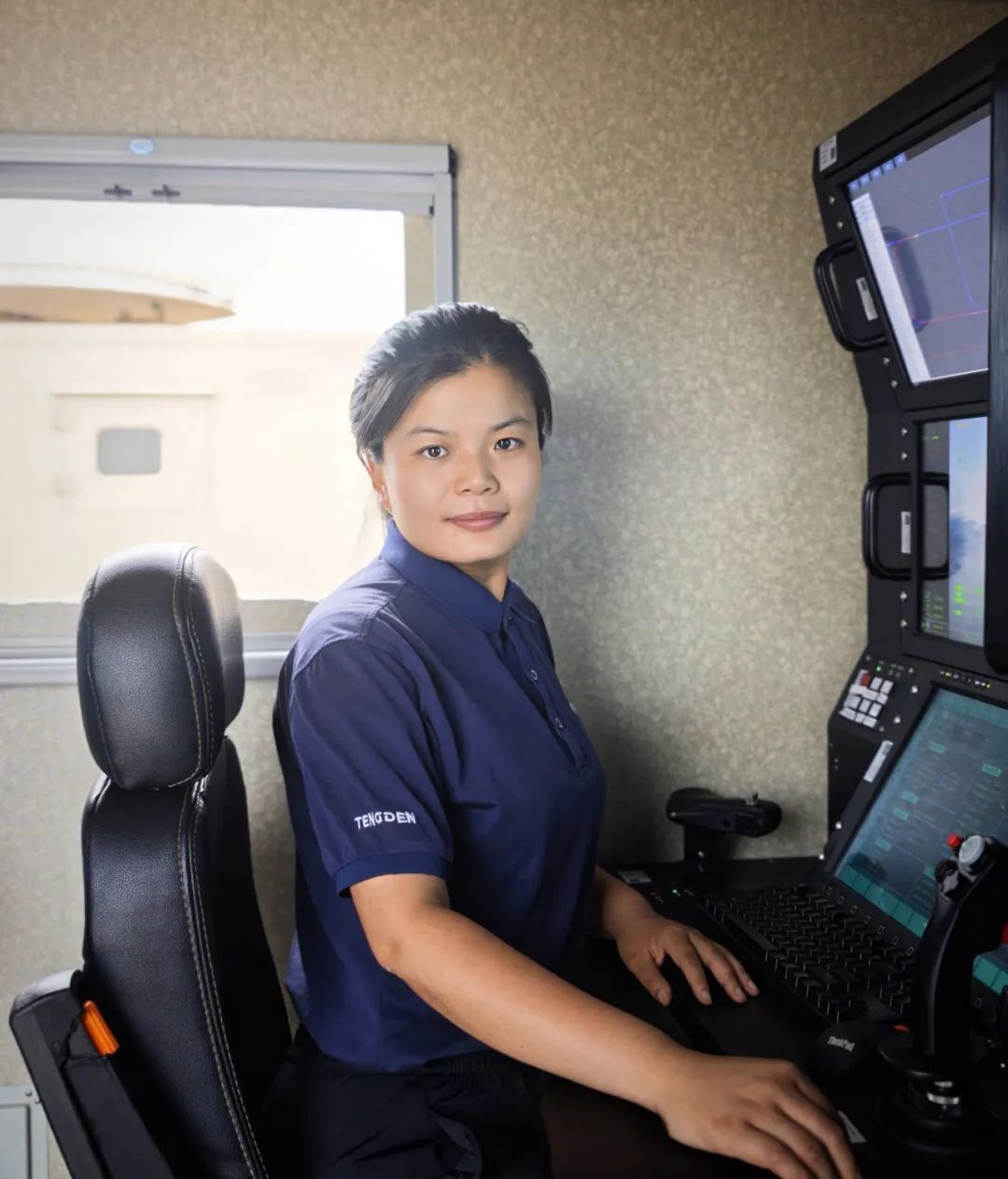 2023年,凭借出色的工作表现和刻苦钻研精神,通过层层选拔、严格培训与考核,程思佳由一名站务员成长为无人直升机飞行操作员,实现了职业生涯的飞跃,开启了“不爱红装爱武装”的人生挑战,这也彰显了腾盾年轻人具有广阔的发展舞台和优越的成长环境。作为腾盾目前唯一的无人机女飞行操作员,程思佳十分珍惜这份荣誉,也深知肩上的责任,工作中她一丝不苟,反复研读每次飞行数据,不放过任何疑点,不断向师父李波请教,充分做好飞行前准备,确保了每次飞行顺利完成。