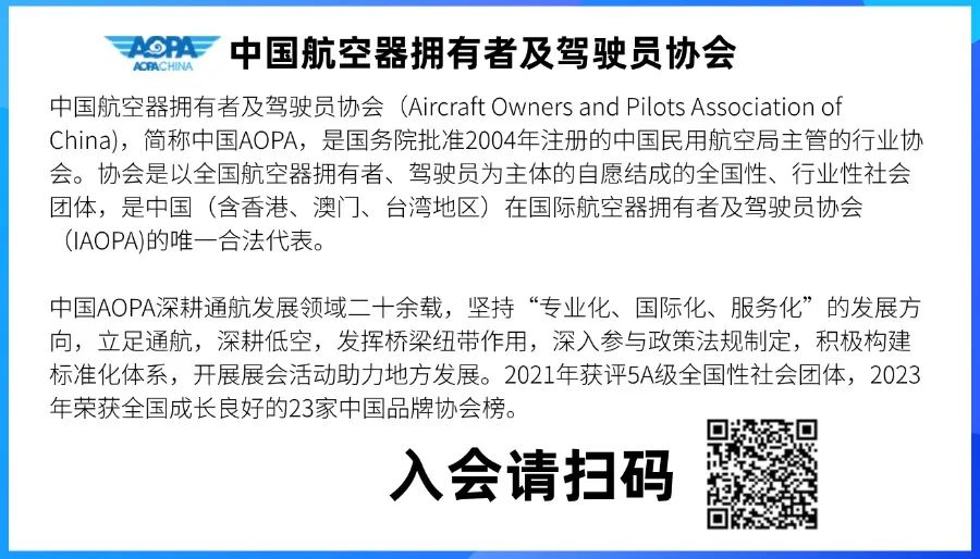 中国航空器拥有者及驾驶员协会,简称中国AOPA;英文名称: Aircraft Owners and Pilots Association of China,缩写:AOPA-China;本团体是中国(含香港、澳门、台湾地区)在国际航空器拥有者及驾驶员协会(IAOPA)的唯一合法代表,是以全国航空器拥有者、驾驶员为主体的自愿结成的全国性、行业性社会团体,是非营利性社会组织。