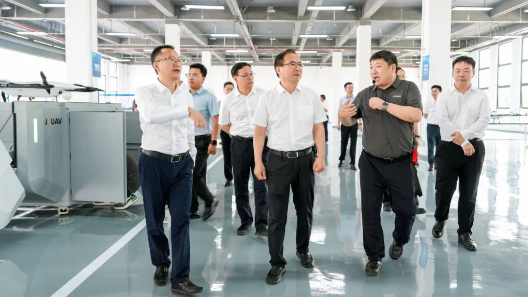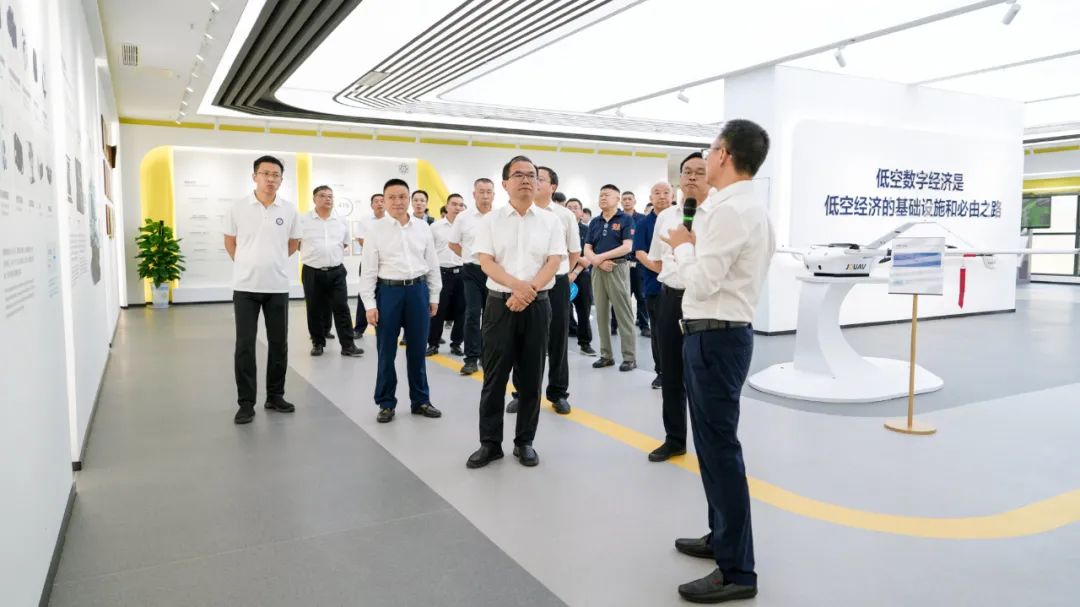 活动现场,与会领导共同为两家新成立的企业剪彩揭牌,并参观了无人机展厅及生产线。