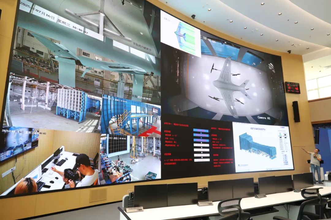 广天院飞演指控中心与试验现场实时联动,主屏幕实时展示总装总测厂房内风墙抗风试验现场、流场可视化试验现场,让出席活动的嘉宾直观感受到低空飞行器风洞在气动特性测试方面的强大能力以及解决低空飞行器复杂气动力问题中的关键作用。