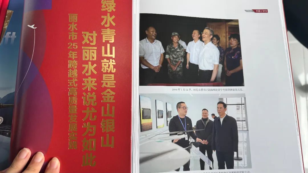 吴舜泽书记曾专程赴容祺智能实地考察调研企业科技创新和项目发展情况,对公司在低空经济领域取得的成果给予充分肯定,并鼓励容祺继续坚持“产业+科技+应用”的融合发展方向。此次调研期间,吴书记与容祺智能总经理陈恳亲切交流,并合影留念。相关照片也被收录进《丽水跨越式高质量发展25周年纪实画册》,作为丽水民营经济高质量发展成果的重要印证。